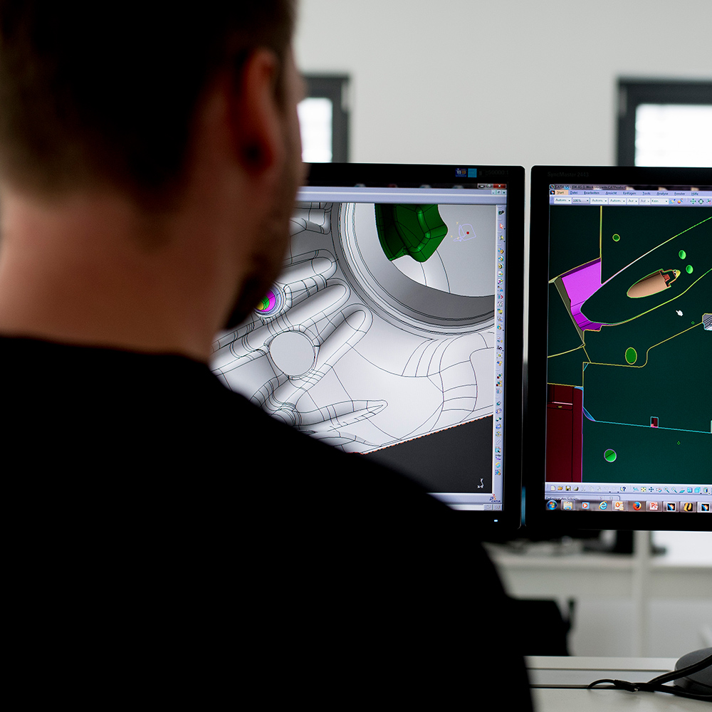 Modernste CAD/CAM-Systeme ermöglichen uns nicht nur die Entwicklung von 3D-Datenmodellen, sondern auch die 3D-Konstruktion und die daraus abgeleitete NC-Bearbeitung in einer geschlossenen Prozesskette sowie natürlich die fertige Endbearbeitung. Darüber hinaus erstellen wir bei Bedarf werkzeugbegleitende Simulationen.